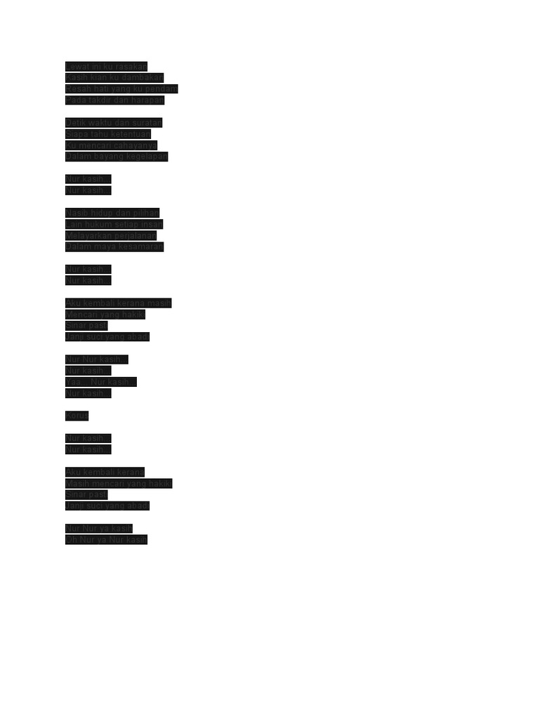 Nur kasih Lirik Lewat ini ku rasakan Kasih kian ku dambakan Resah hati yang ku pendam Pada takdir dan harapan. Lewat ini ku rasakan Kasih kian ku dambakan Resah hati yang ku pendam Pada takdir dan harapan Detik waktu dan suratan Siapa tahu ketentuan. Resah hati yang ku pendam.